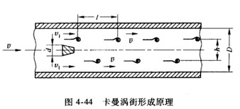 注意:式(4一108)推導(dǎo)的前提是渦街穩(wěn)定,即滿(mǎn)足h/l=0.281,它適合于任何形狀的漩渦發(fā)生體。