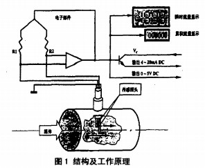 熱式質(zhì)量流量計是利用加熱時液體溫度上升某一值所需的能量與液體質(zhì)量之間的關(guān)系來測量液體或氣體質(zhì)量的一種流量儀表。一般用來測量煤氣等氣體的質(zhì)量流量。它具有壓損小,流量范圍度大,高精度,高重復(fù)性,高可靠性,體積小,易維護不易損壞等特點。早期的熱式質(zhì)量流量計直接將加熱線圈和測溫元件放入液體中與液體接觸,是一種接觸式流量計,由于現(xiàn)場環(huán)境中普遍存在腐蝕、磨損及防爆問題,使它的工業(yè)應(yīng)用受到了很 大的限制。到20世紀50年代,人們又提出了與液體不接觸的邊界層流量計,它克服了接觸式流量計的缺點,但測量結(jié)果受介質(zhì)參數(shù)(如熱 導(dǎo)率,比率,粘度)以及環(huán)境的震動等的影響;到20世紀70 年代,基于測量液體溫度分布的熱分布型TMF,由于其獨特的優(yōu)點在國內(nèi)備受青睞,可它有一種致命的缺點測微小流量 ,僅僅適用于小管徑測量,大管徑液體測量它就束手無策,正是在這些流量計的基礎(chǔ)之上,人們又設(shè)計了一種插入式TMF,它在國內(nèi)得到了迅猛的發(fā)展,可以用來測量大管徑的氣體流量。